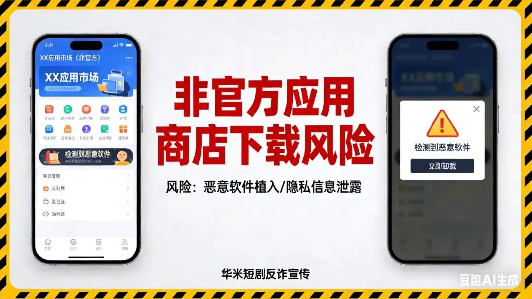 华米短剧 = 高危诈骗/山寨APP,绝对不正规、不安全,建议立即卸载、