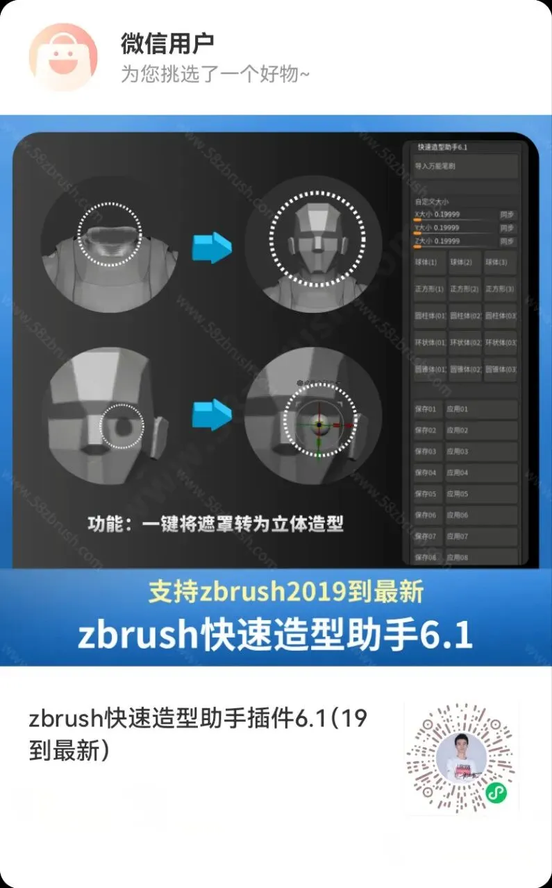 zbrush快速造型助手插件更新6.1,兼容2019到到2026版本更高版本 (1)免费学习解答分享(周老师微信15767872372) 快速造型助手6.1插件已经更新 (2)zbrush学习群全部免费|进群+雕刻资料) (3)付费课程了解ZBrush雕刻系列付费课程!