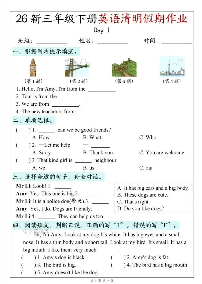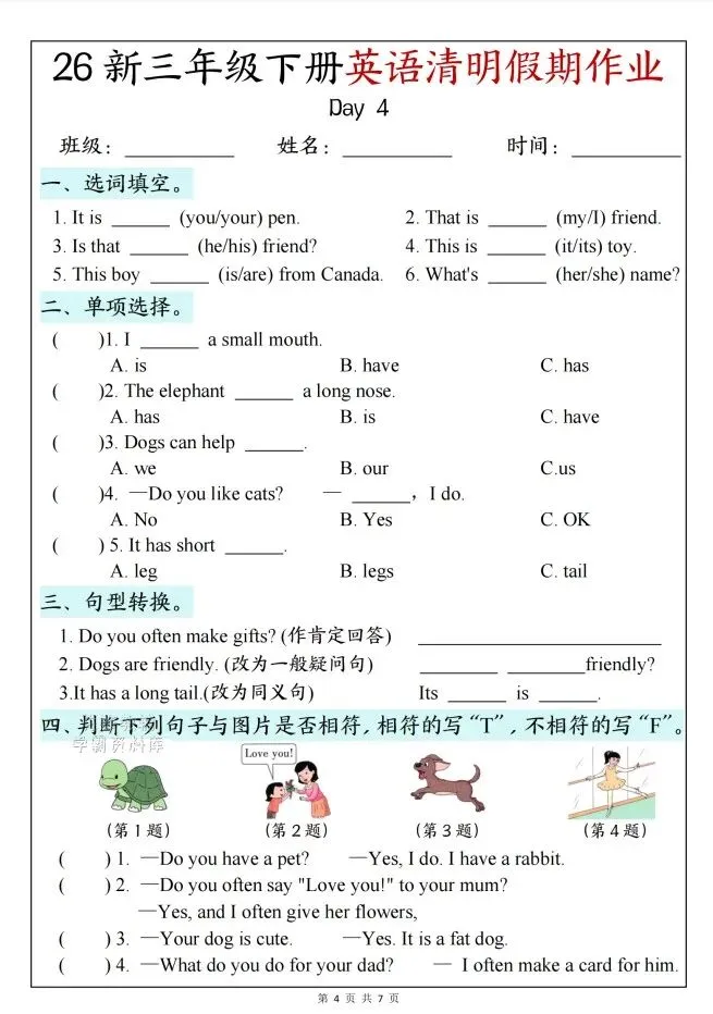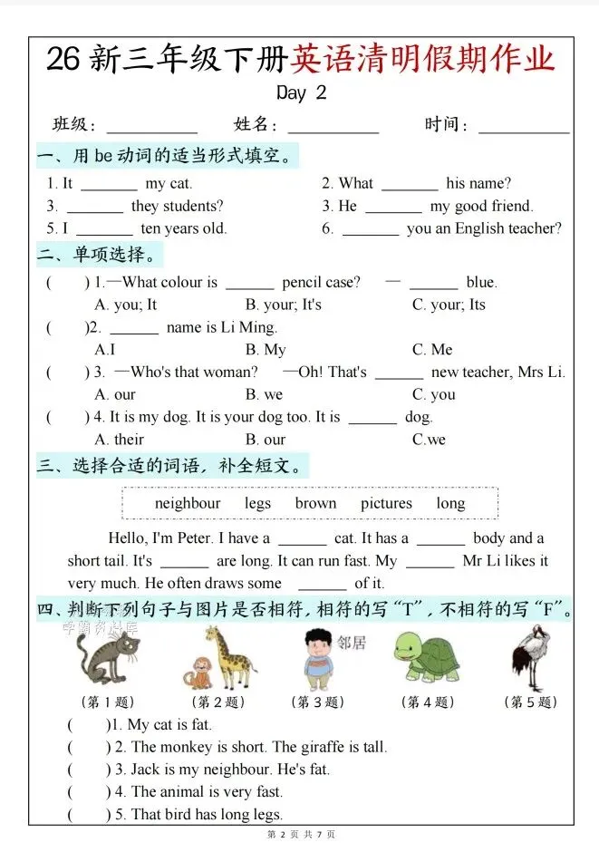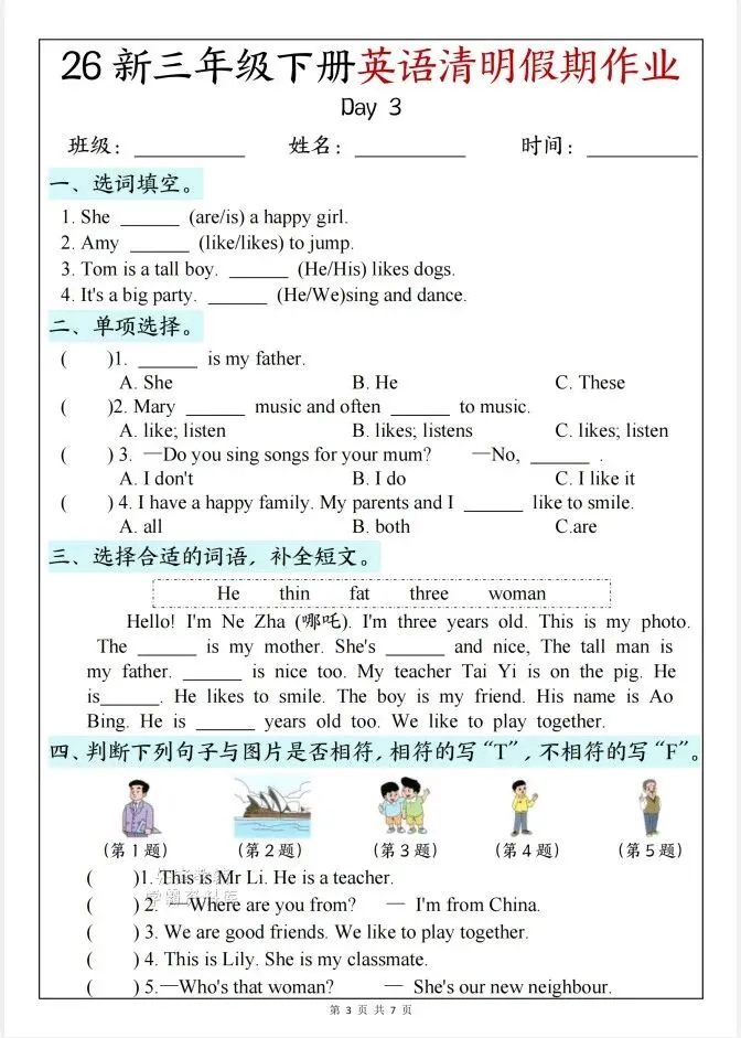 今天给大家整理了26新三年级下册英语清明节假期作业,转发给朋友或班级群,受益更多人,帮助孩子学习!