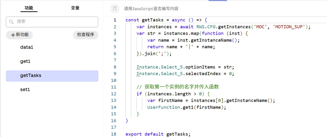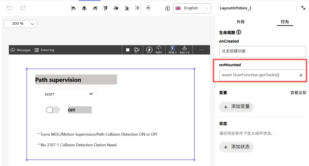2. 创建getTasks函数,并关联到LayutInfobox_1的onMounted事件中。