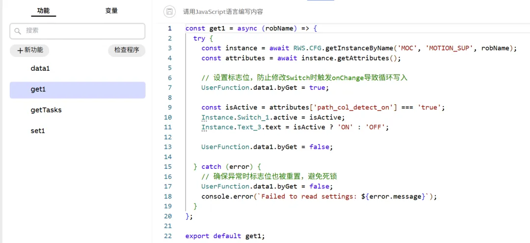 3. 创建get1函数,用于获取MOC/MOTION_SUP下的对应机器人的path_col_detect_on 的值。