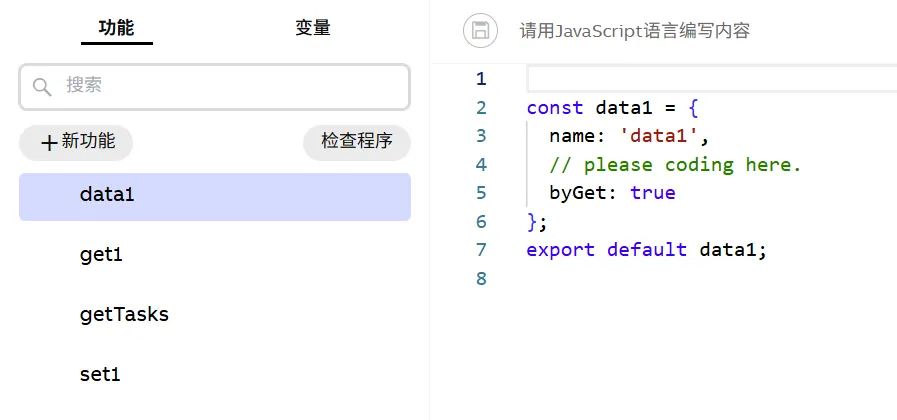 5. 为避免get1函数修改Switch值,触发Switch的onChange,创建一个data1(类型为data),并在get1函数执行时,将byGet设置为true