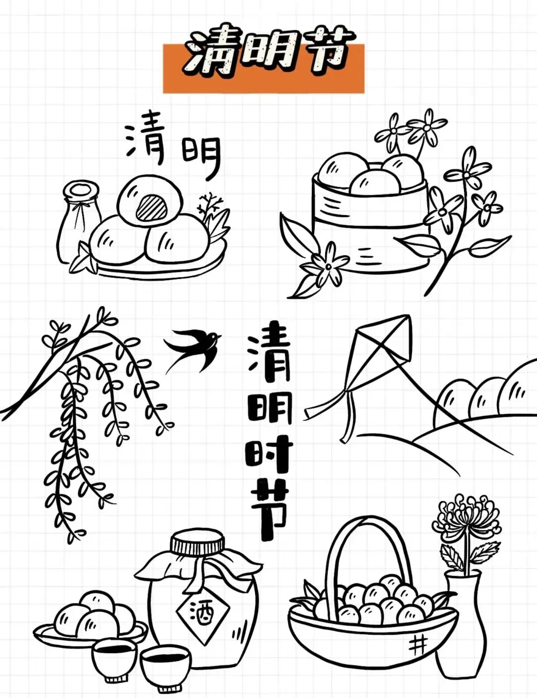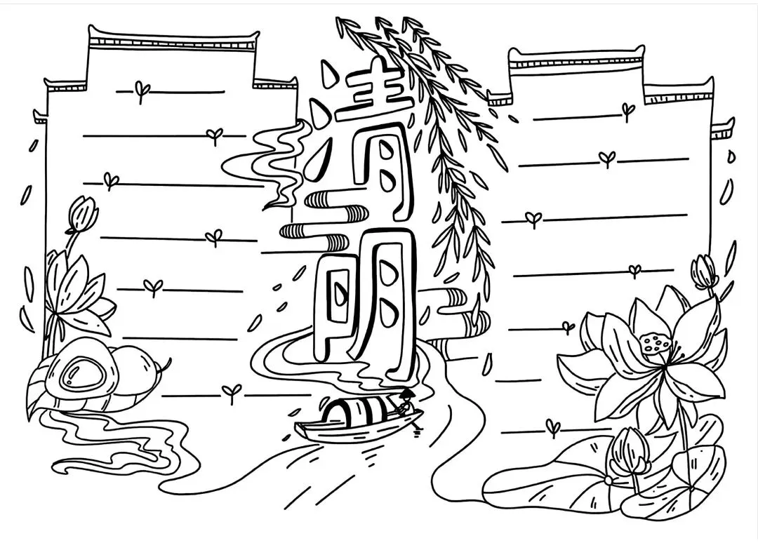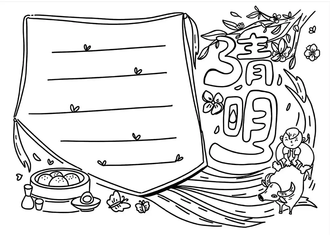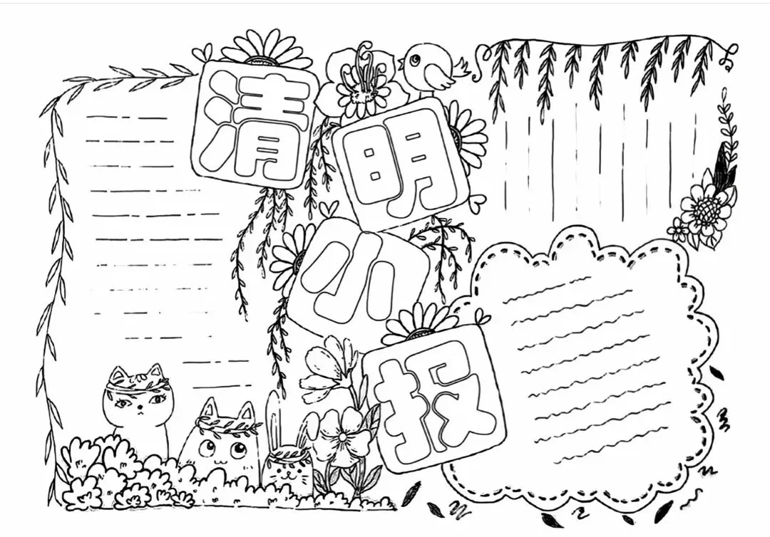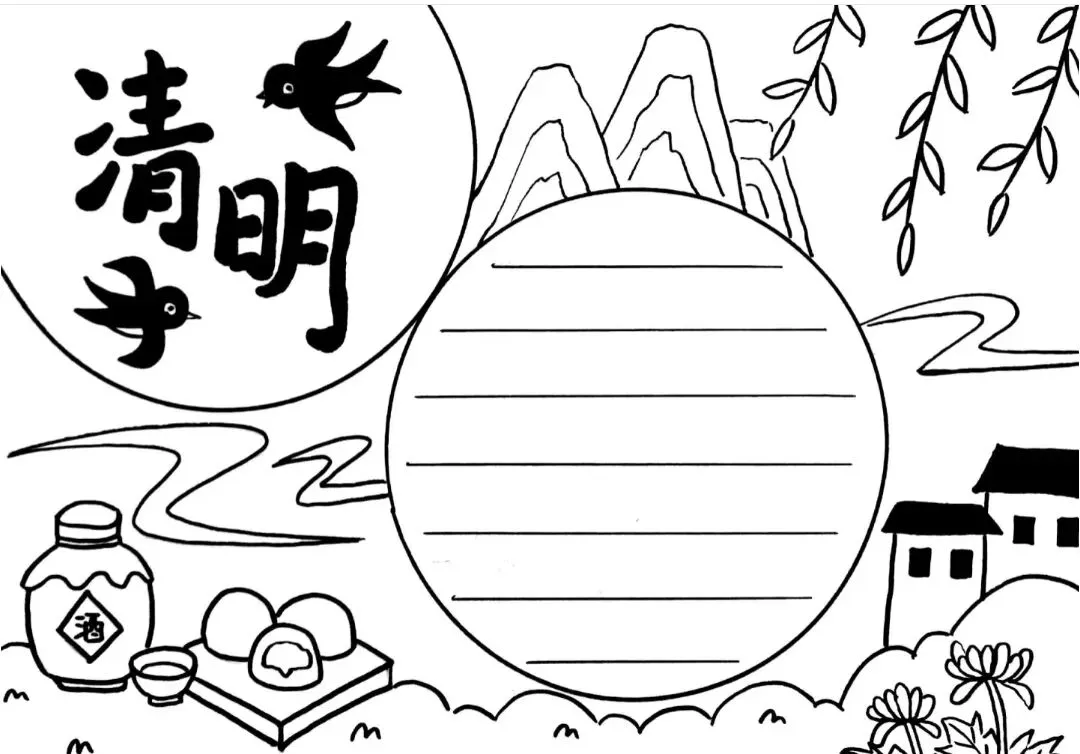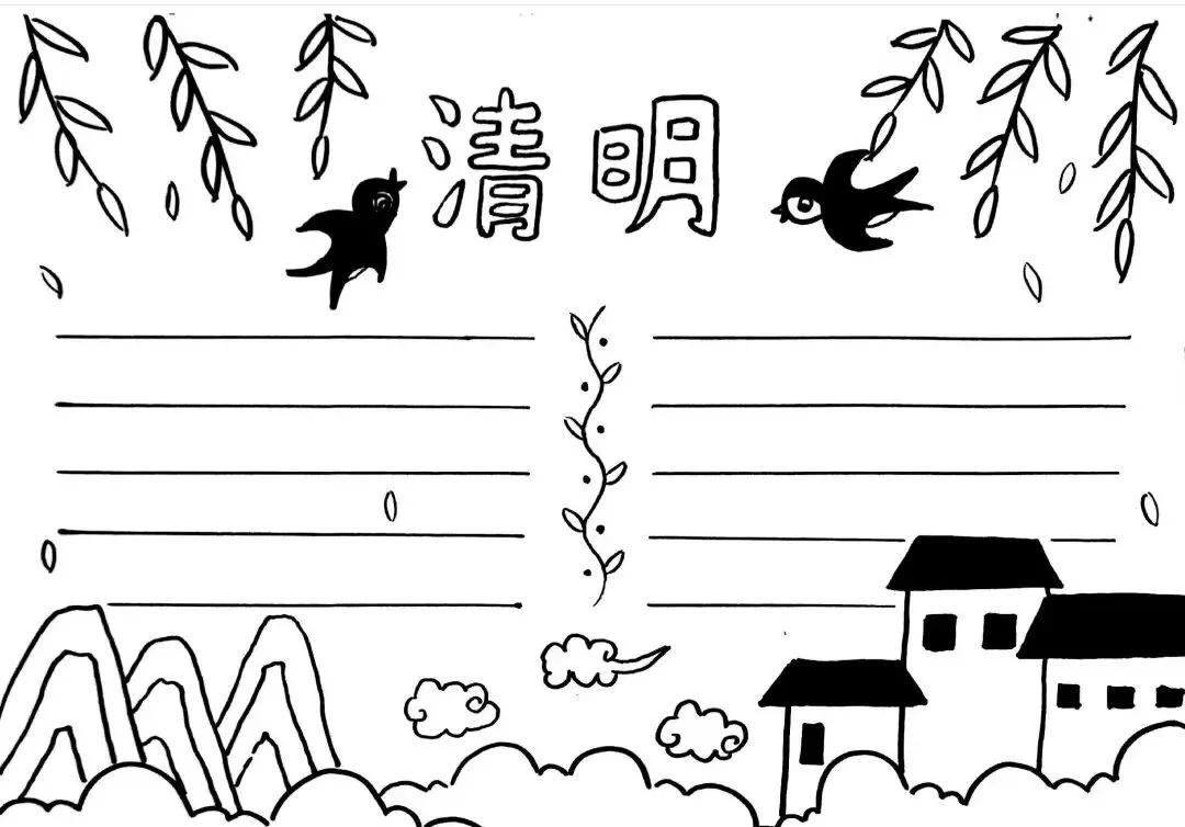 清明节手抄报线稿资料包(可打印)#清明主题画#手抄报大全