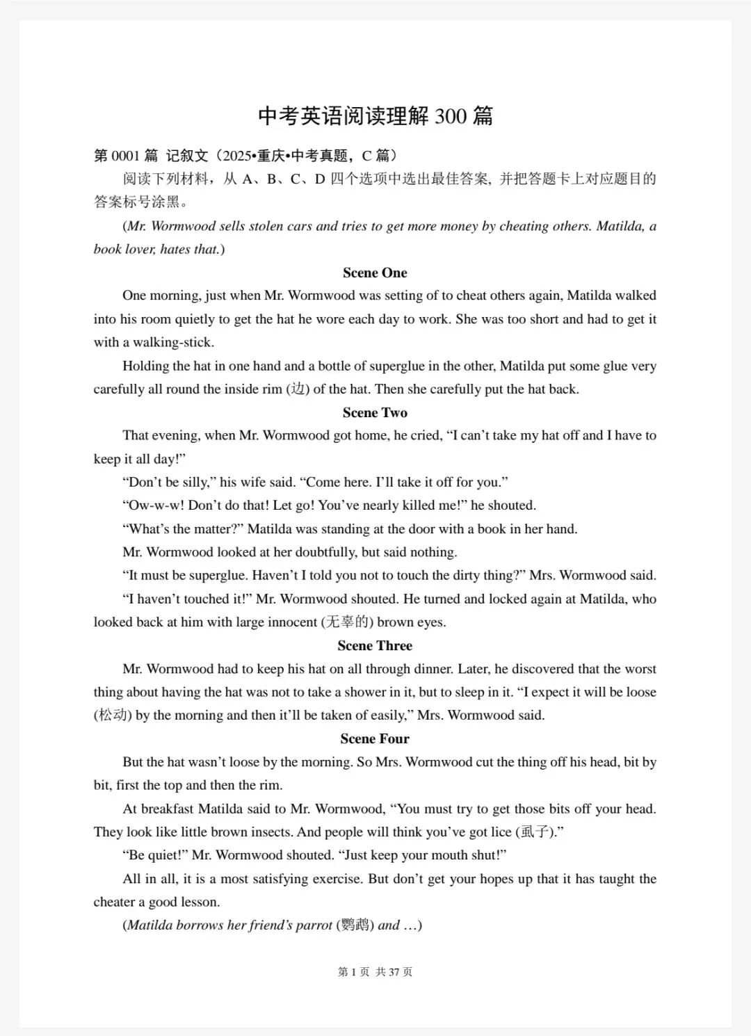 超级干货!中考英语阅读理解专练(可下载打印),英语学习好资源!