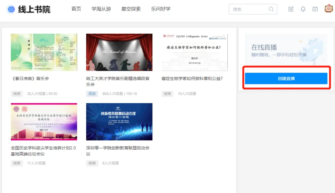 操作说明 | 如何在线上书院自主创建直播?