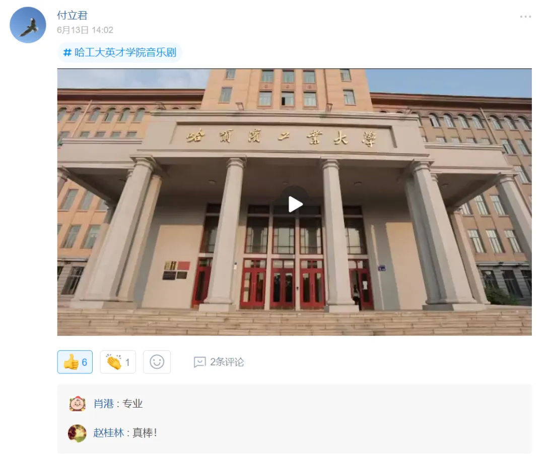 可在“轻享广场”发起相关话题,即时分享活动精彩片段或照片,@成员互动交流。
