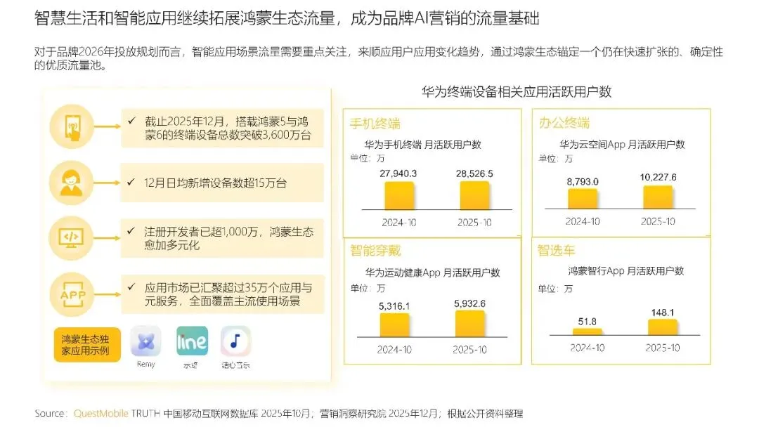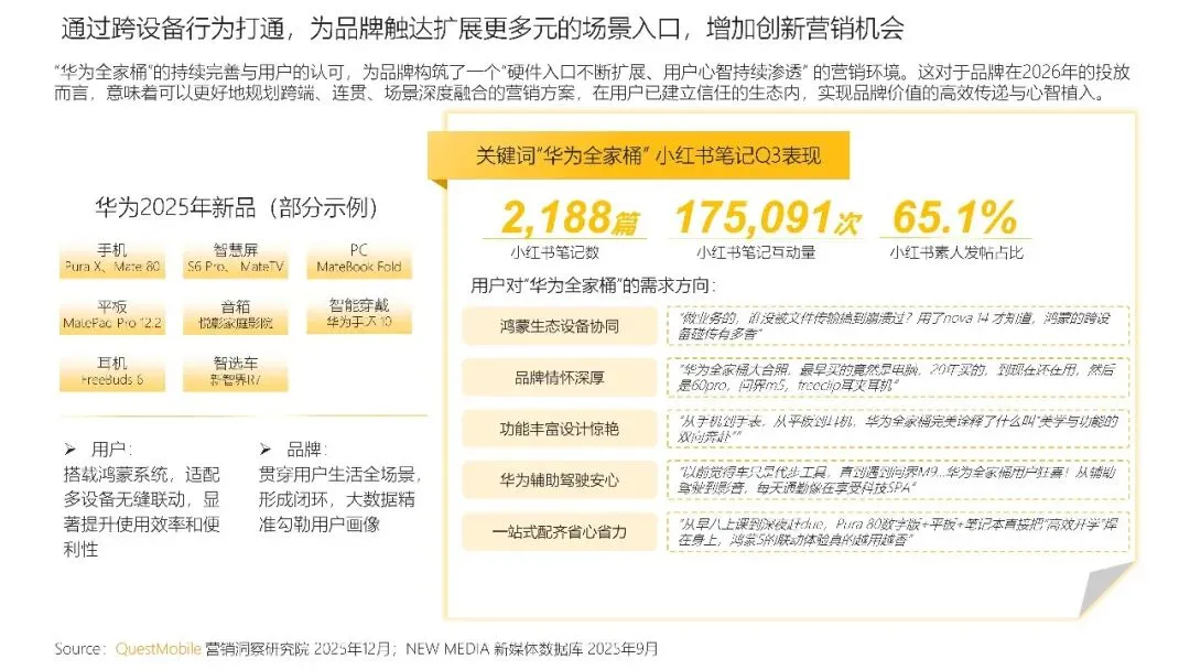 “华为全家桶”的持续完善与用户的认可,为品牌构筑了一个”硬件入口不断扩展、用户心智持续渗透”的营销环境。这对于品牌在2026年的投放而言,意味着可以更好地规划跨端、连贯、场景深度融合的营销消方案,在用户已建立信任的生态内,实现品牌价值的高效传递与心智植入。