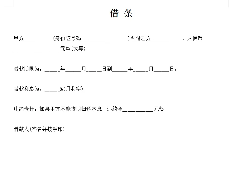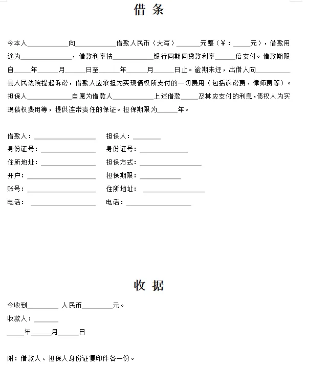 借条模板/欠条/收据Word版,可编辑可下载 借条模板/欠条/收据Word版,可编辑可下载。 部分内容如下,完整版下载方式见文末。 详细资料下载地址:(手机端请长按下方二维码识别,电脑端请用手机微信扫描识别)