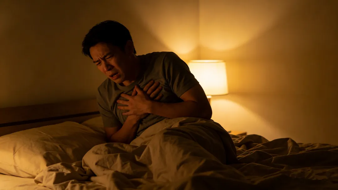 不知道大家有没有过这种感受:躺着睡觉时,突然觉得胸口发闷,像有块石头压着,喘不上气,必须赶紧坐起来大口呼吸,才能慢慢缓解。