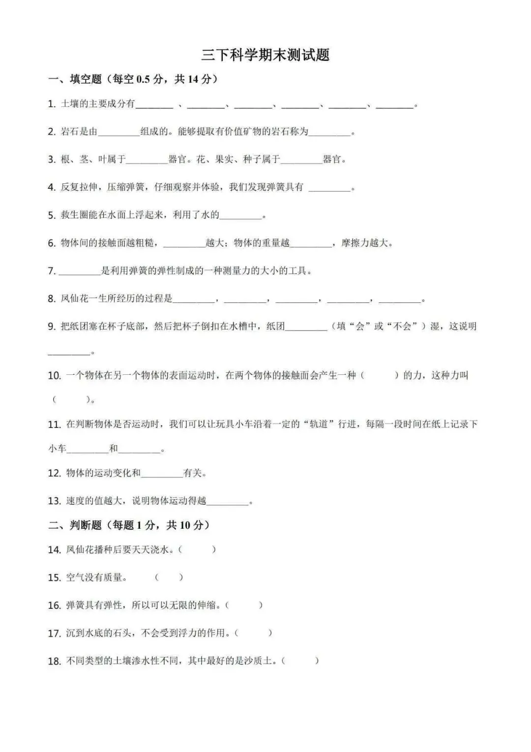 孩子期末科学复习没方向?知识点零散记不住?别焦虑!这份由一线老师内部整理的期末测试题,专为三年级下册科学设计,题型全面,直击考点,帮孩子高效巩固,考前冲刺不迷茫!