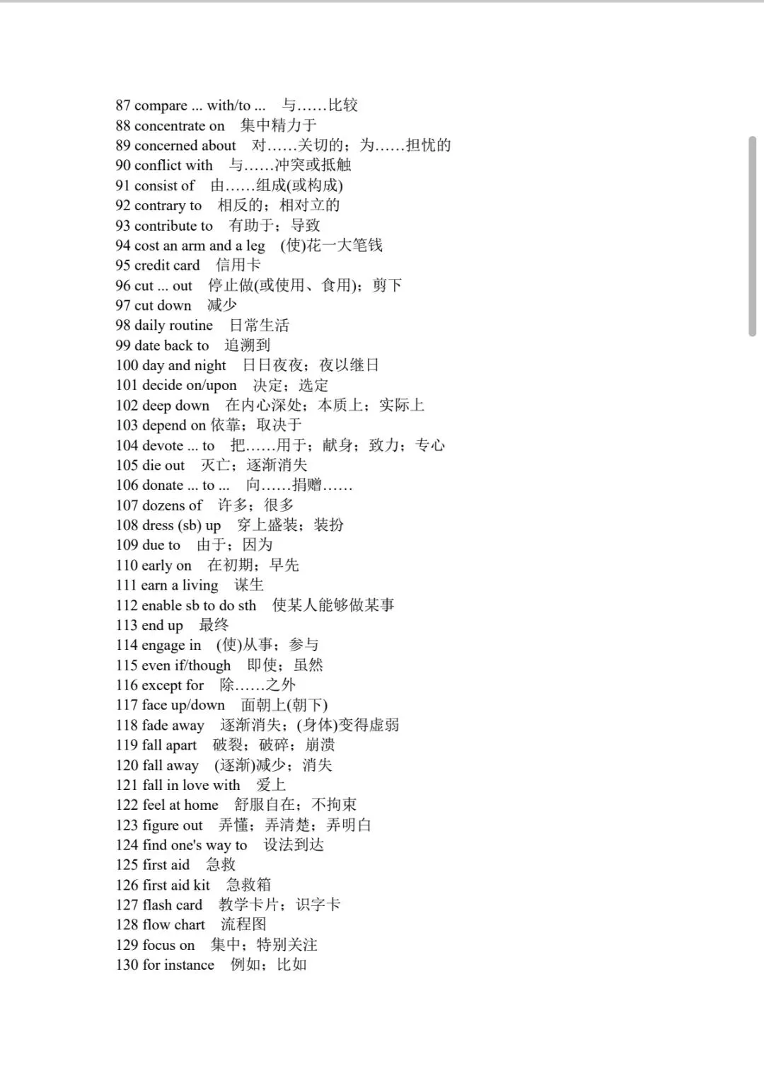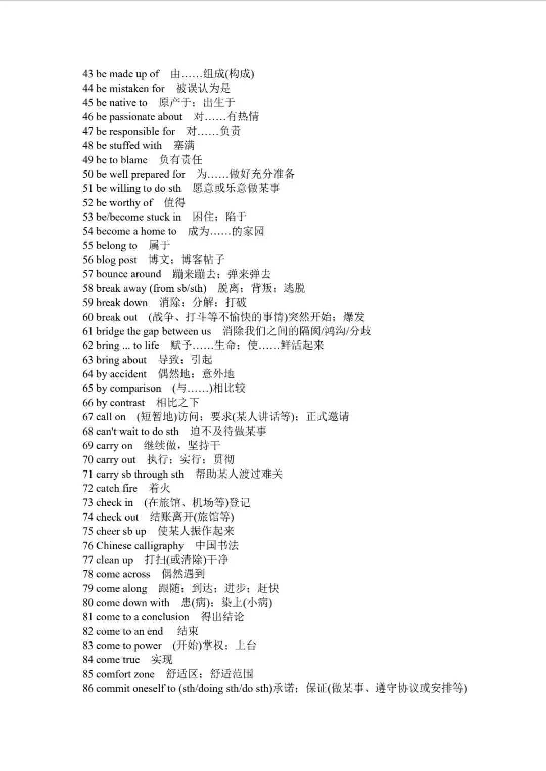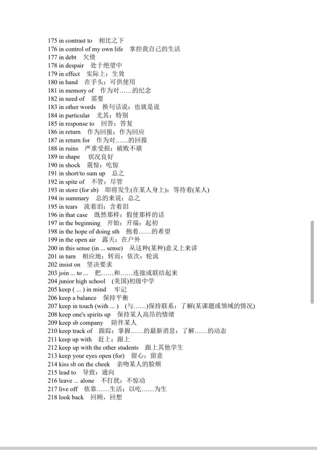 高中英语必背短语词块音序排列打印版9页完整复习资料|可打印 给大家整理了9页高中英语新教材短语词块汇编,需要完整可打印版的关注本号,回复【短语词块】就可以领取。 完整版可直接打印给孩子复习用。 整理不易,且用且珍惜!