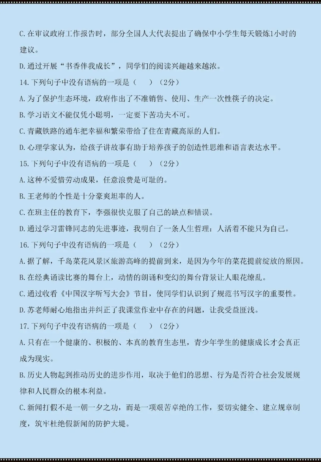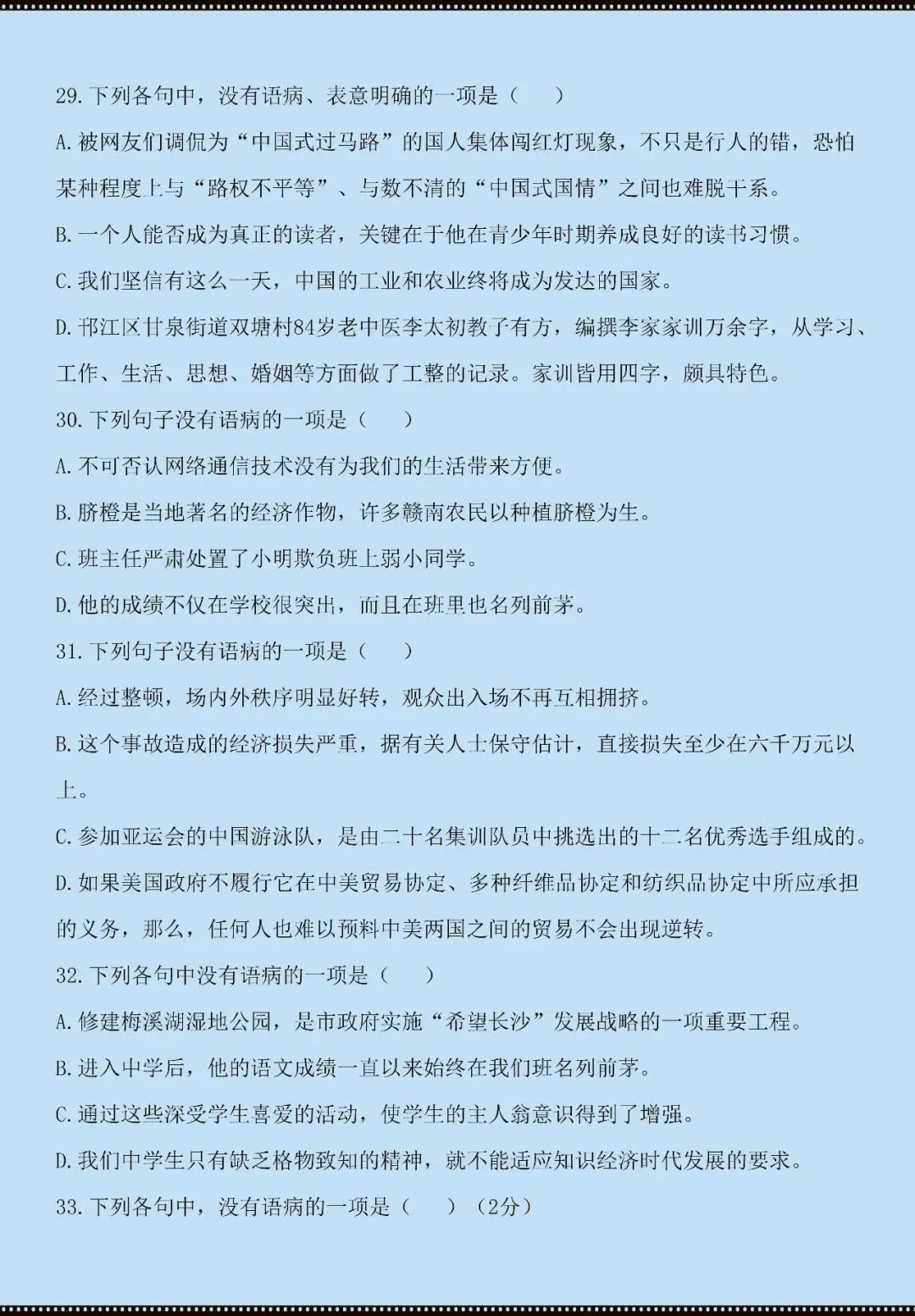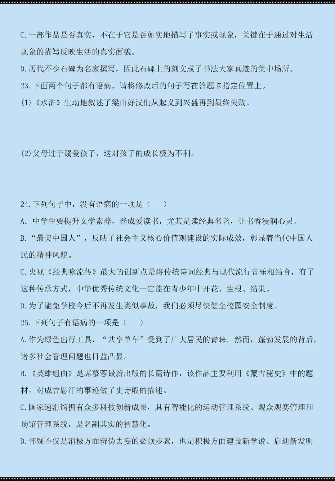 今天老师给大家整理了:七年级下册语文病句辨析技巧+练习(电子版可打印)