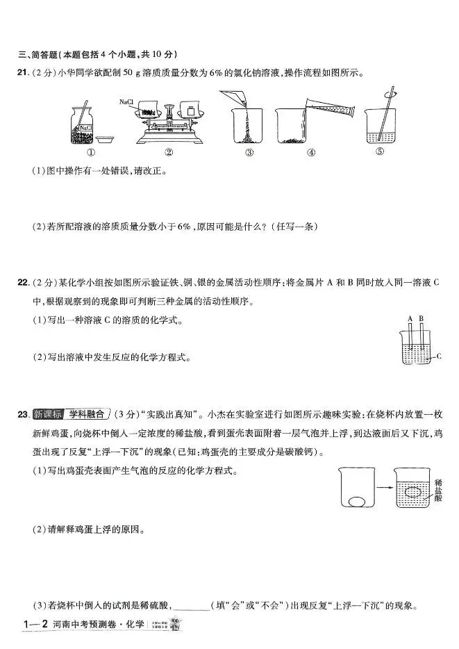 2025中考化学测评卷|可下载打印 点击上方“语数英父母学堂”↑↑↑关注我 版面有限,不过多展示 需要直接拉至文末下载 完整电子打印版免费领取方式 ▲点击上方 语数英父母学堂 在公众号消息框发送: 5364,即可免费领取