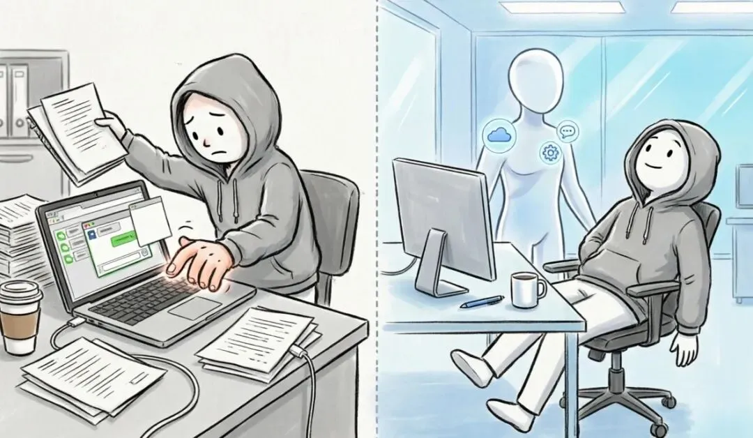 前两天我看到一个现象:办公室里有个同事,每天都在重复做同样的事——整理文件、查天气、记笔记、在微信里回复工作消息、手动生成报告。