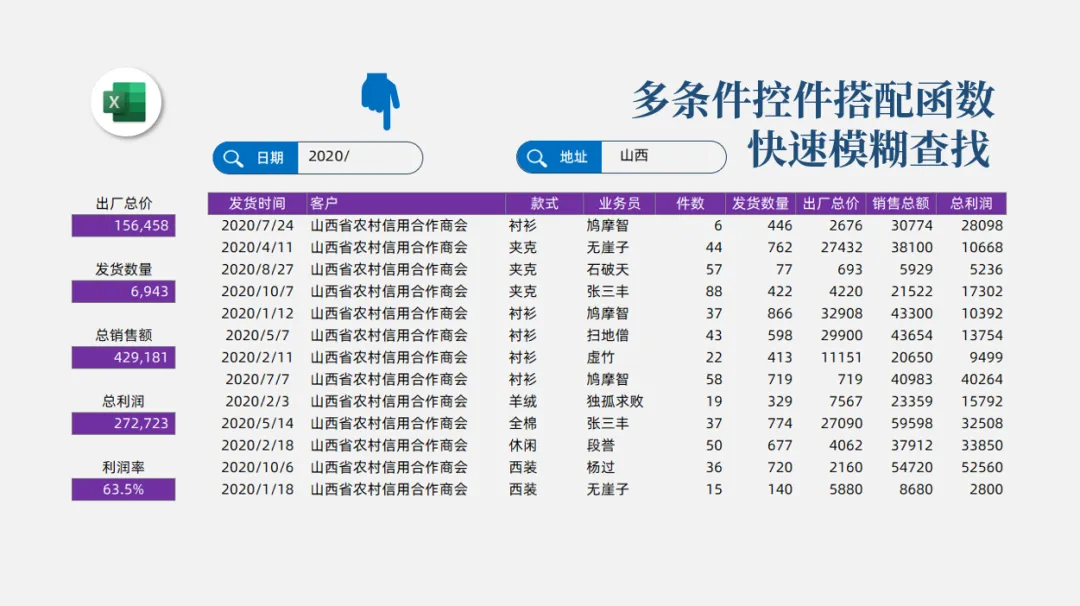 多条件快速查找案例模板,大概长成这个样子: