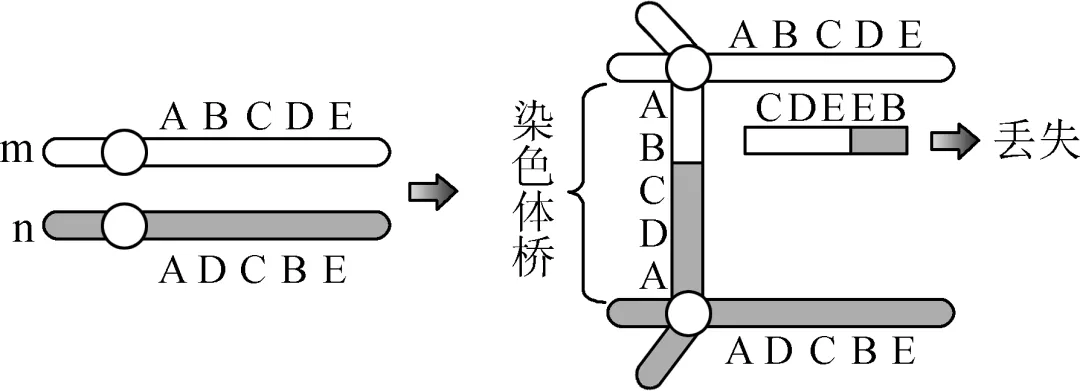 【解析】m和n是同源染色体,其染色体片段位置不同,其上蕴含的遗传信息也不一定相同,A错误;m和n在减数分裂Ⅰ前期时会形成染色体桥,剩下完整单体会联会配对,形成环状结构,B正确;端粒酶的作用是延伸端粒,不是水解端粒,C错误;染色体桥随机断裂,子细胞中染色体数目不变,但染色体结构可能发生异常,D错误。