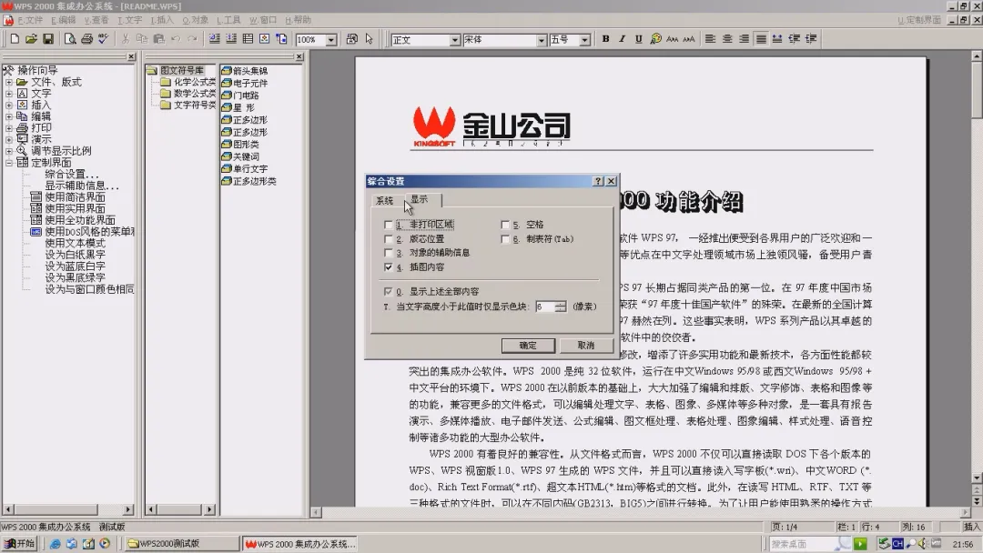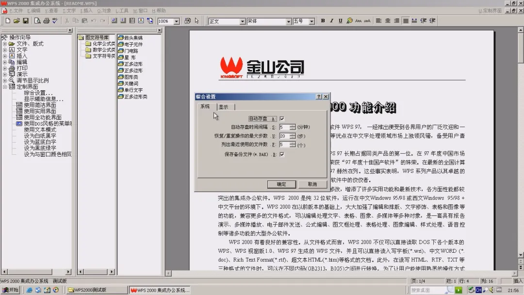 ▲综合设置之系统,和WPS 97比多了“显示”的设置项。