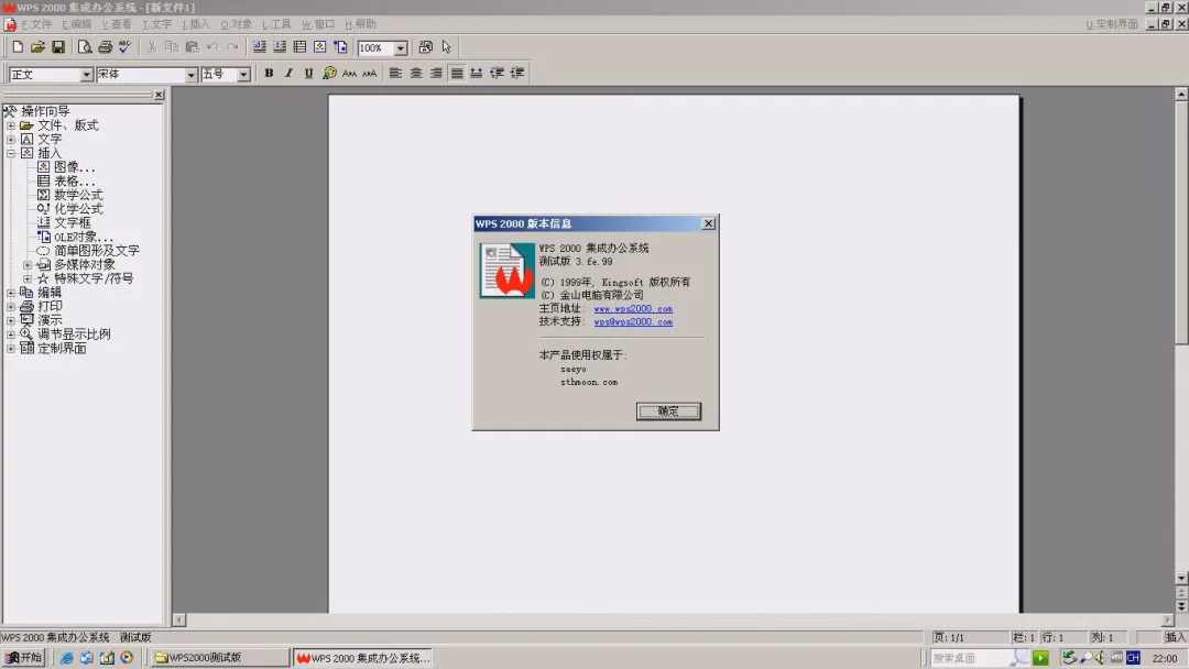 ▲WPS 2000测试版 关于。