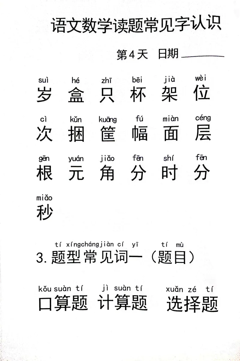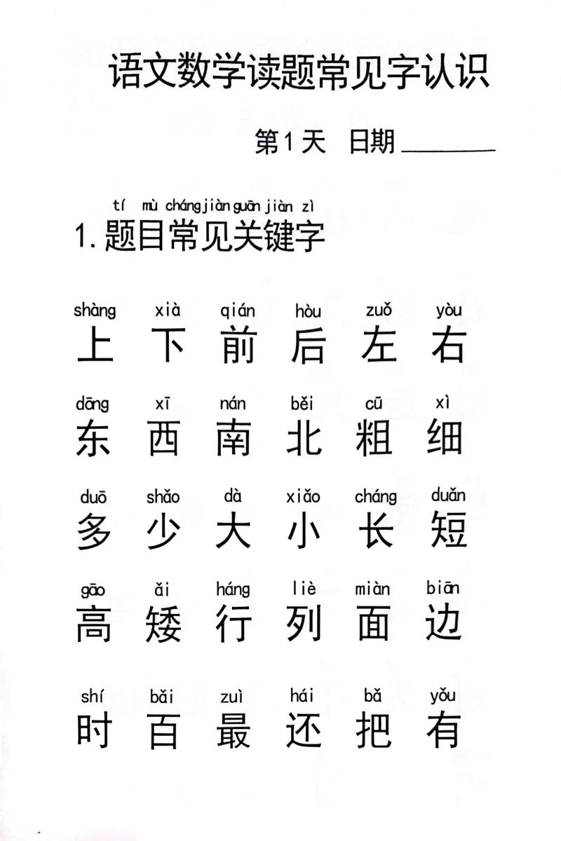 幼小衔接《语文数学读题常见字认识》,电子版可打印