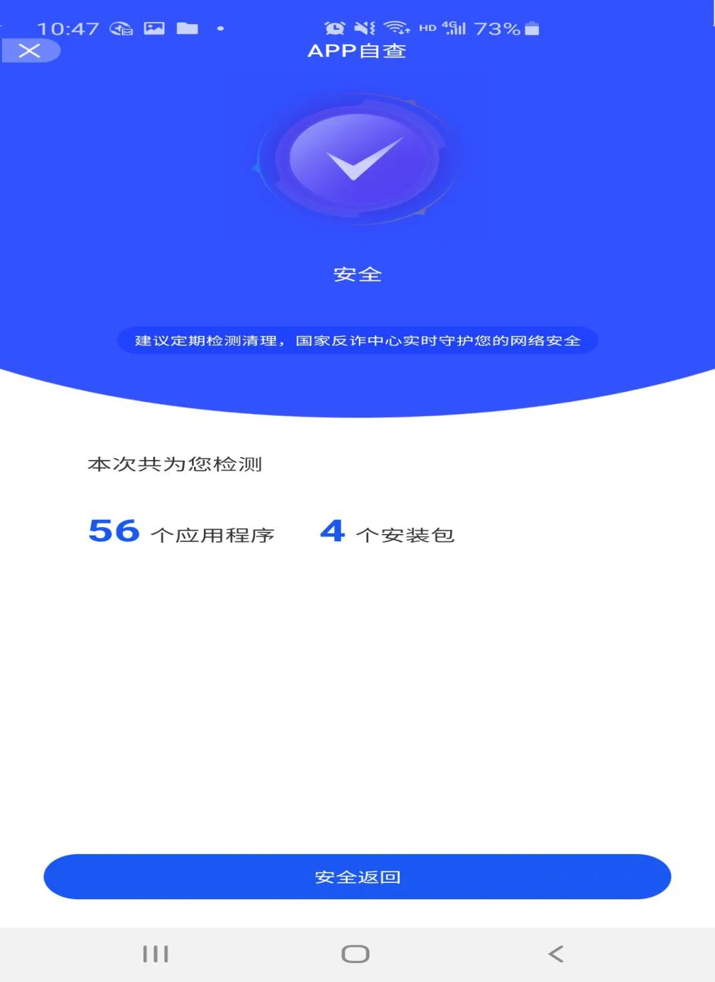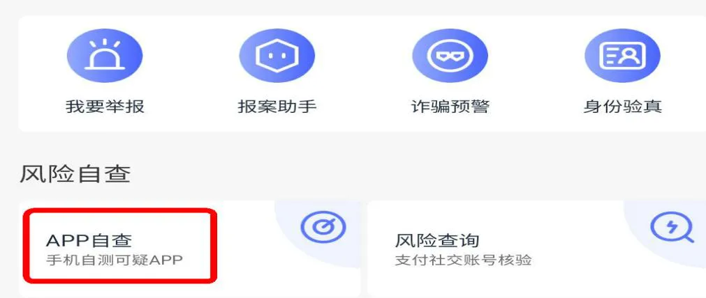 ● 通过“APP自查”,检测手机里安装的可疑应用。