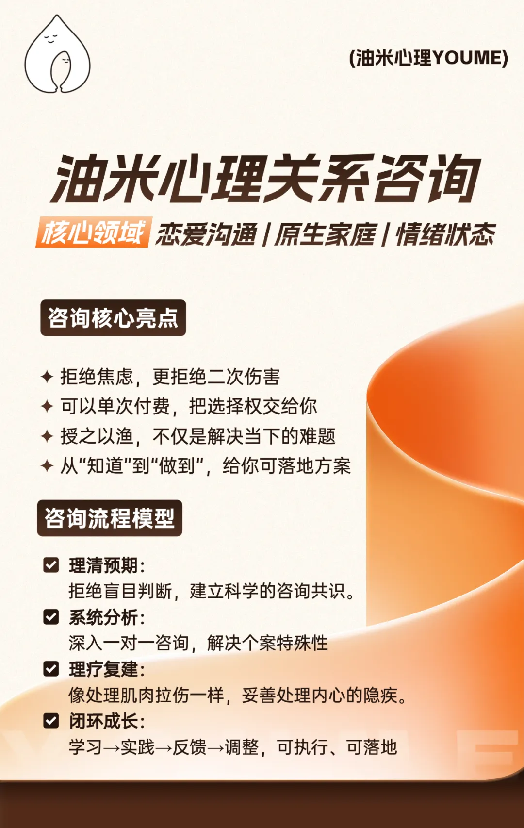 如果你正在被情感、工作、人际关系等困扰,欢迎关注「油米心理YOUME」,我们会陪你一起完成自我&关系的蜕变。