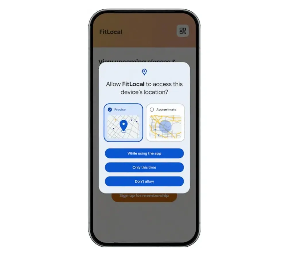 新的授权界面直接提供“精确定位”和“大致定位”两个选项,并在用户操作前就明确区别,让选择更直观,减少误授权的情况。