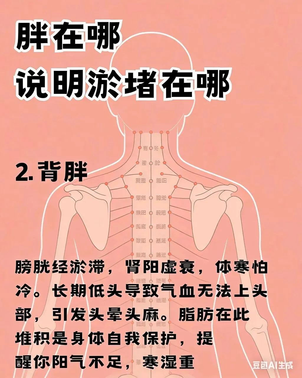 2. 背胖:膀胱经淤滞,肾阳虚衰,寒湿重