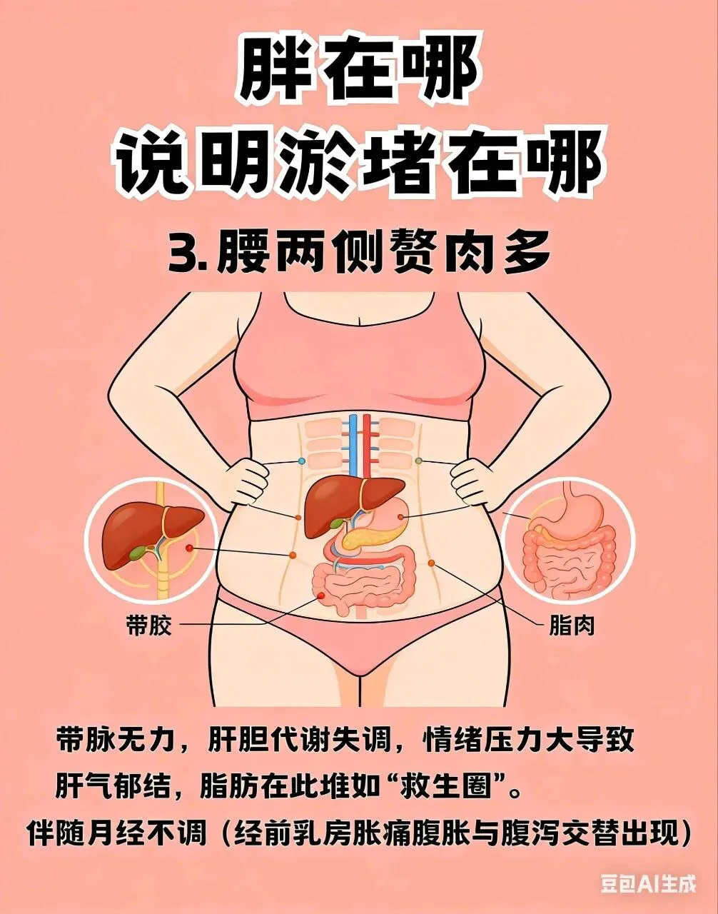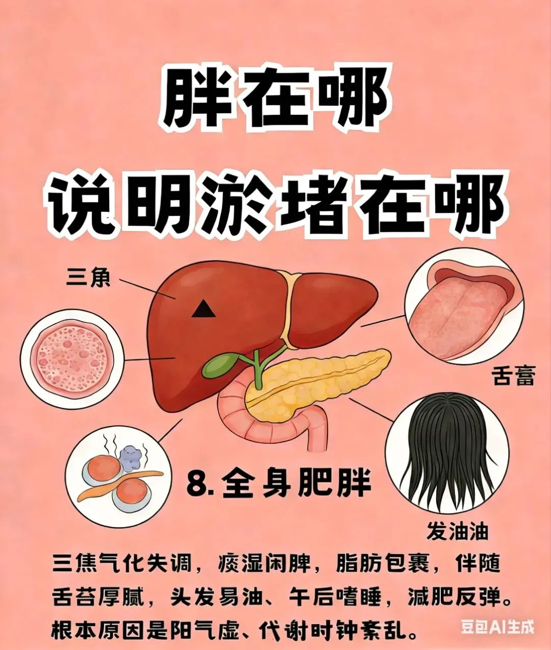 其实,脂肪从来不是凭空长的!中医里有句话:「胖在哪,说明淤堵在哪」。