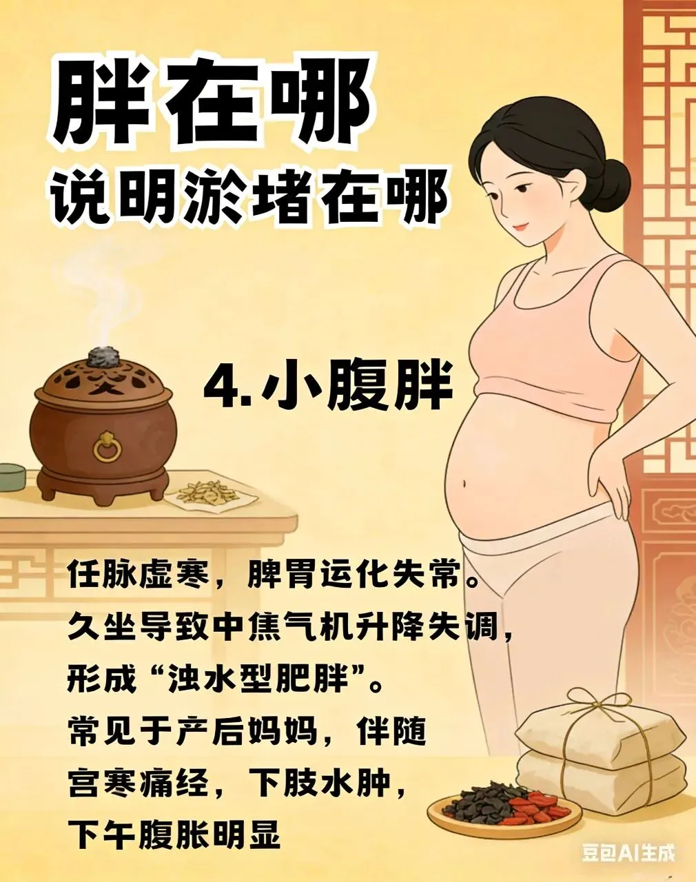 4. 小腹胖:任脉虚寒,脾胃运化失常