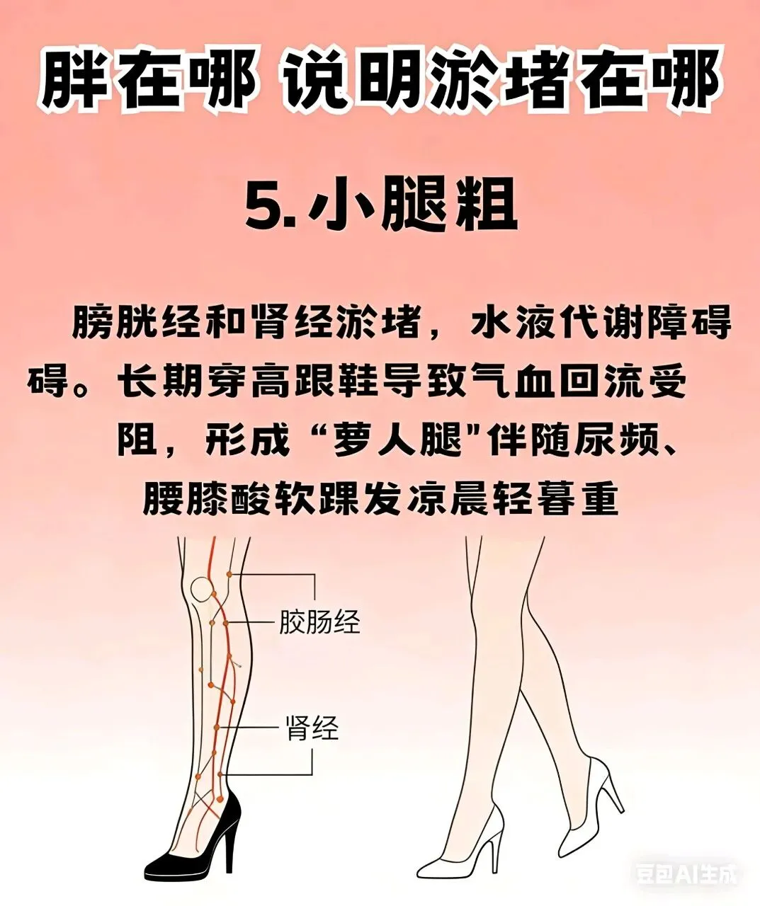 5. 小腿粗:膀胱经和肾经淤堵,水液代谢障碍