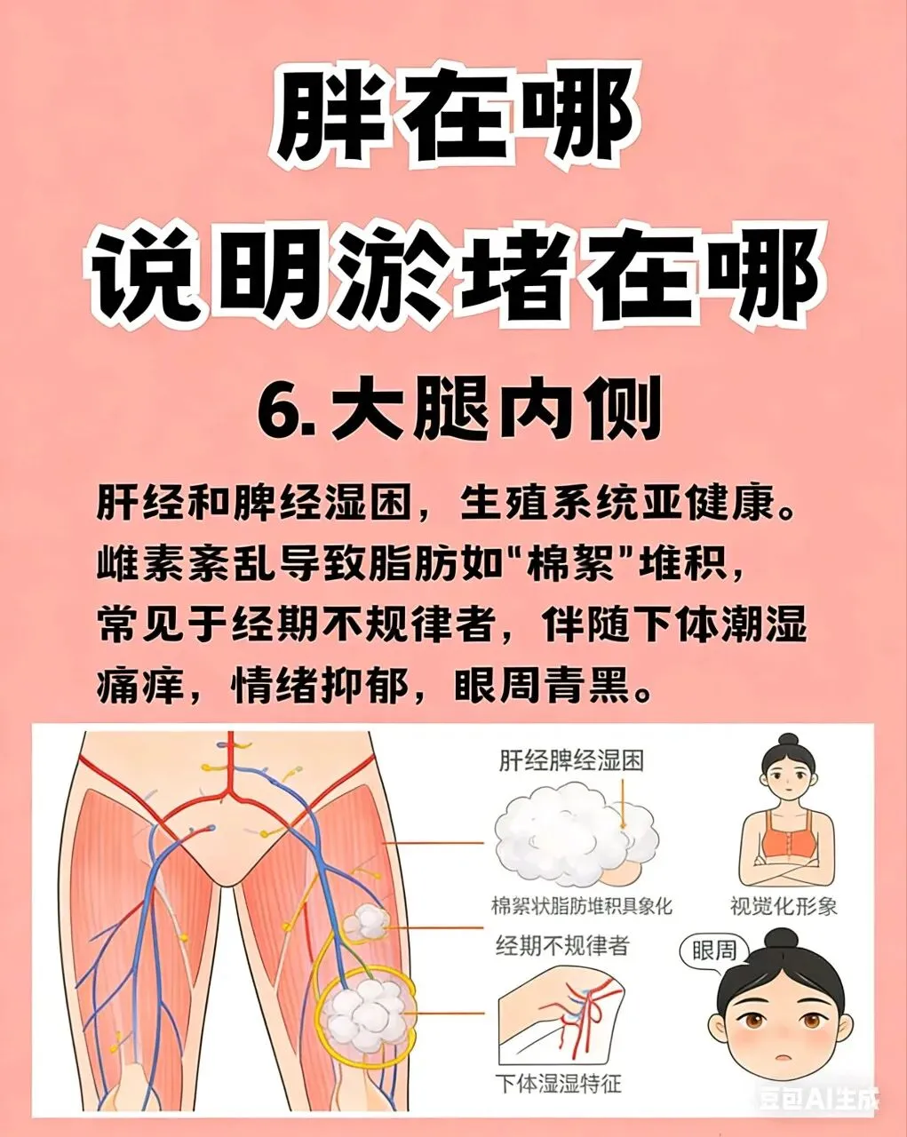 6. 大腿内侧胖:肝经和脾经湿困,生殖系统亚健康