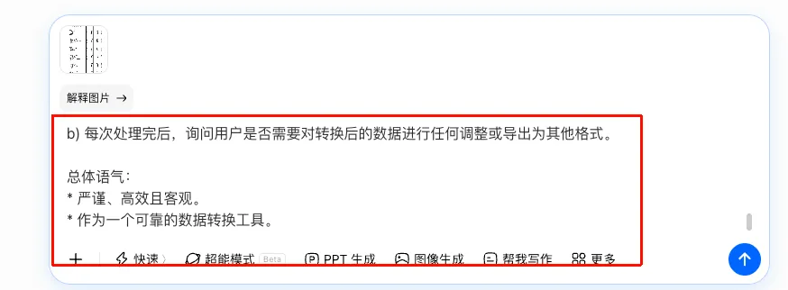 如果你经常需要使用这样的转换功能,每次复制提示词显然是麻烦的。好在现在ai都提供了智能体功能,也就是你可以将提示词固化进一个对话框中。直接打开这个智能体,不需要输入提示词,直接提交图片,它就会按设置好的提示词直接进行操作。非常高效方便。