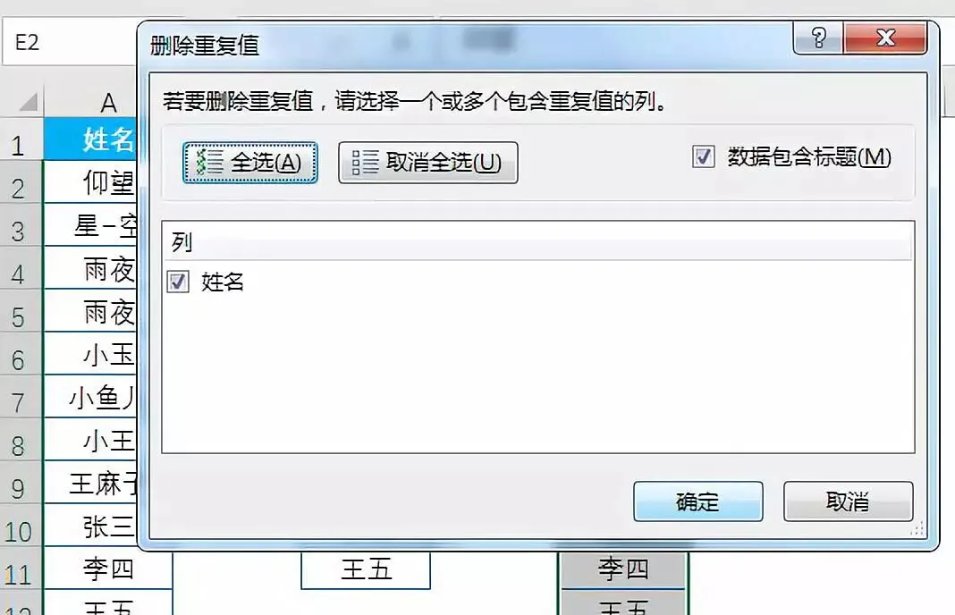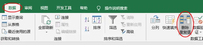 点要删除重复值数据区域中任意单元格