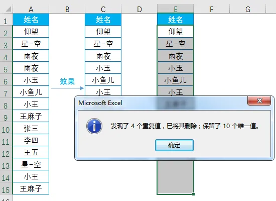 在弹出的【删除重复值】对话框中点【确定】