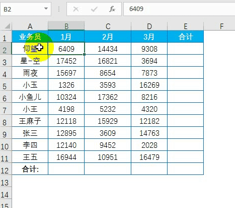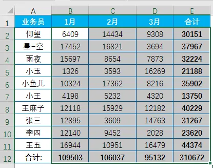 选中数据区域B2:E12