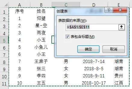 在弹出的【创建表】对话框中点【确定】