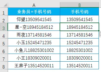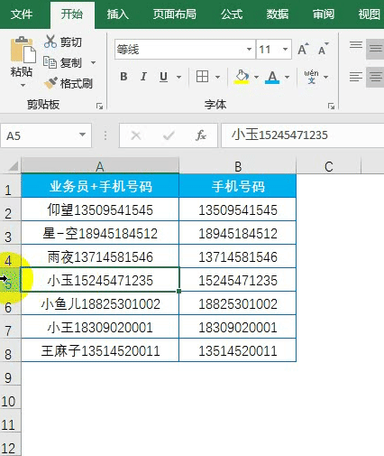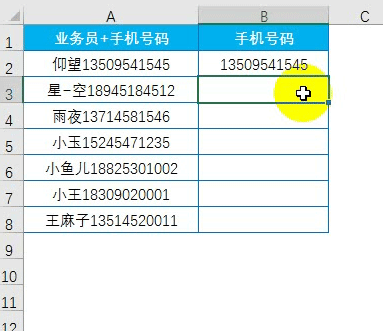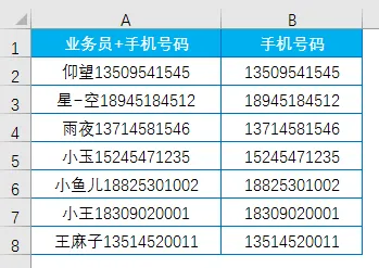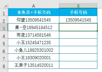 从A列提取手机号码,如B列