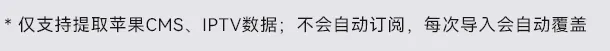 最近Cinetry作者更新的确实挺频繁,刚刚增加了解析接口的功能,之后前两天还有网友提说要不要把tvbox的订阅链接的功能再增强一下这就已经上线了,要知道资源最丰富的也就是tvbox系列了吧,很多大佬都做了各种资源。我也是测了几个大佬的资源发现都能导入。当然只有cms和直播资源哈,就是平时看点播和直播的,像那些a和c中间那个字母站的资源的是没法导入的。不过我测试的也有导入不成功的,不知道是不是跟加密有关还是跟链接失效有关。