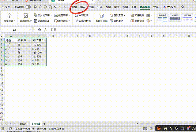 Excel学习第24天:组合图制作 组合图,是指同一个图表中用了两种及以上图表类型。 比如既用了柱形图,又用了折线图。 一般是解决既要看一个指标的趋势,又要看数值大小。分两个图表数据过于松散,所以组合到一张图表上,信息更集中。 如下示例: 月份 销售额 (万元) 同比增长率 1 月 85 12.50% 2 月 92 8.30% 3 月 78 -15.20% 4 月 105 34.60% 5 月 110 4.80% 6 月 120 9.10% 如果老板既要看每月销售额多少,又要看增长率趋势。就要用到柱形图组合折线图。 按照操作路径:选中数据,插入,图表,组合图。系统已经默认销售额为柱形图,增长率用折线图。 这时候如果直接点击插入图表,效果如图所示,折线图已经没有波动,因为增长率一直在1以下,和销售额数据差异过大,波动就过于微小。 解决办法是,回到插入图标前,在右边次坐标轴那边打一个勾,这样折线图也就是增长率的数值对应右边坐标轴,波动就可以看出来了。 所以,数值差超过 10 倍一定要用次坐标轴,否则小指标会被压扁看不清。 有问题留言区交流 关注狸子,一起进步