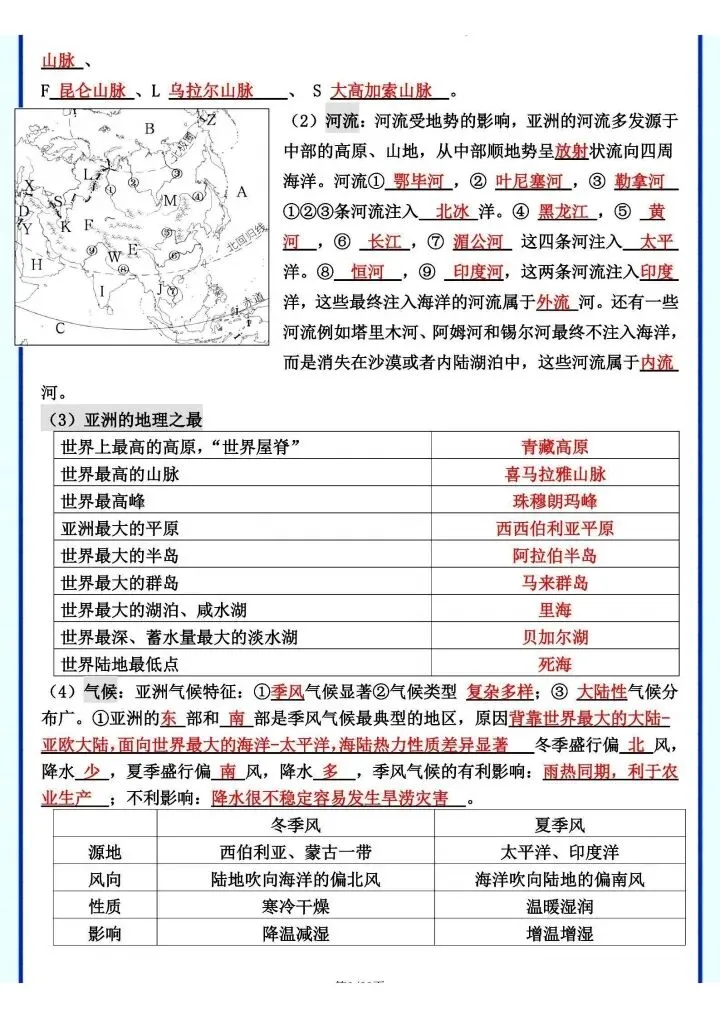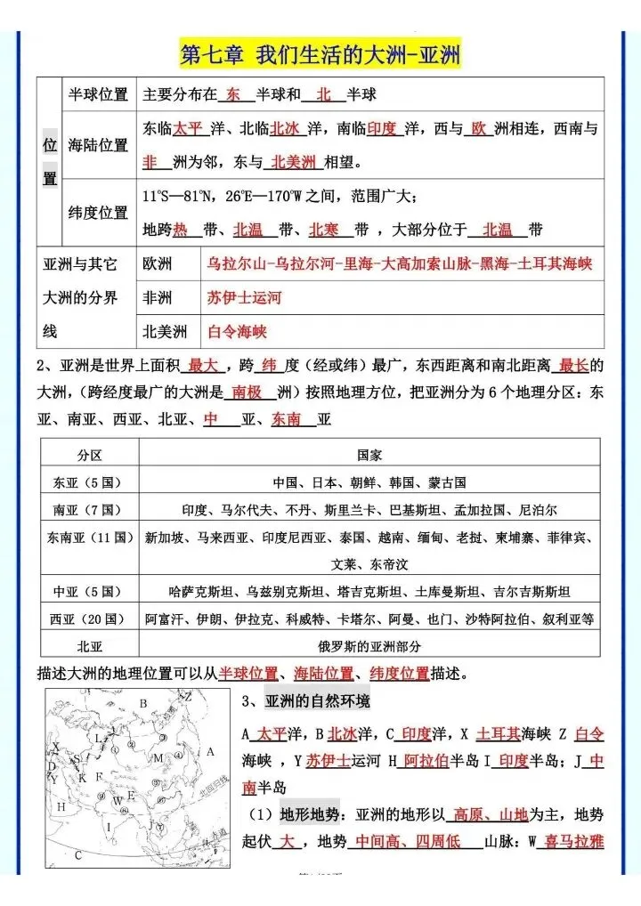 今日分享:七年级下册地理《知识点总结》人教版 电子版可打印,拉至文末可直接领取完整电子版