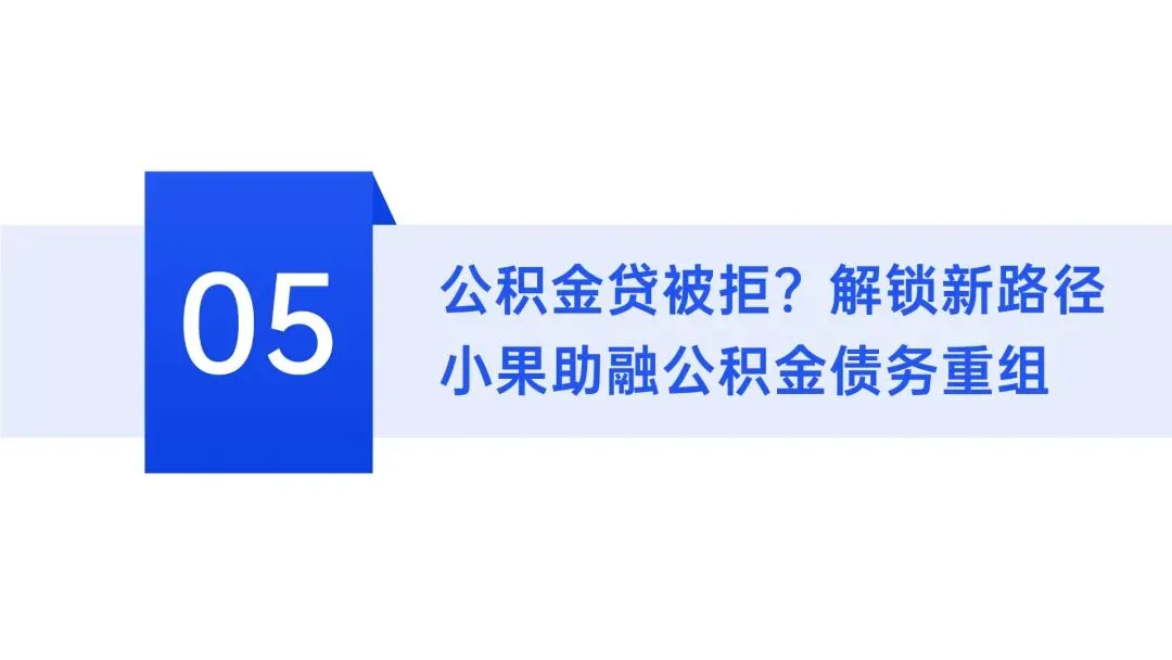 已踩坑、被拒贷?解锁公积金贷新路径:小果助融公积金债务重组,低息置换、盘活公积金价值,实现债务合规优化
