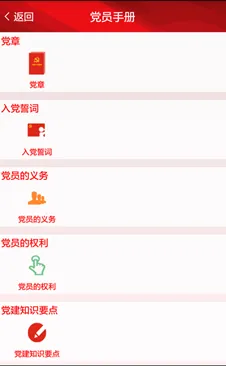 收录了党章、入党誓词、党员的权利、党员的义务、党建知识要点等内容,便于党员职工随时随地通过APP学习党的知识,在学习中自觉加强党性修养,争做合格党员。