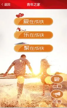 包括“爱在成铁”、“乐在成铁”、“聚在成铁”三大功能,通过审核后的35岁以下单身青年可进入“爱在成铁”浏览异性单身青年的信息,系统会优先推送本地区、同兴趣的异性青年,用户也可以定向筛选自己意向的交友对象。“乐在成铁”借鉴当前流行的微信“朋友圈”和“抖音”小视频等青年人喜欢的方式,用户可以自主上传图片、视频并配上文字,所有用户可按照人气或发布时间进行浏览,对喜欢的内容可以点赞和评论。“聚在成铁”是集活动发布、报名、审核、展示于一体,将线下团组织活动流程放到移动互联网,极大方便组织者和参与者。