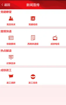 包含“党建瞭望”、“路情快递”、“热点解读”、“成铁政工”四个功能板块,通过文字、图片、图解、视频、VR等各种形式,突破传统以文字资讯为主导的信息宣传模式,使党员学习教育更加多元,使党的声音随时随地传递到集团公司每个角落。