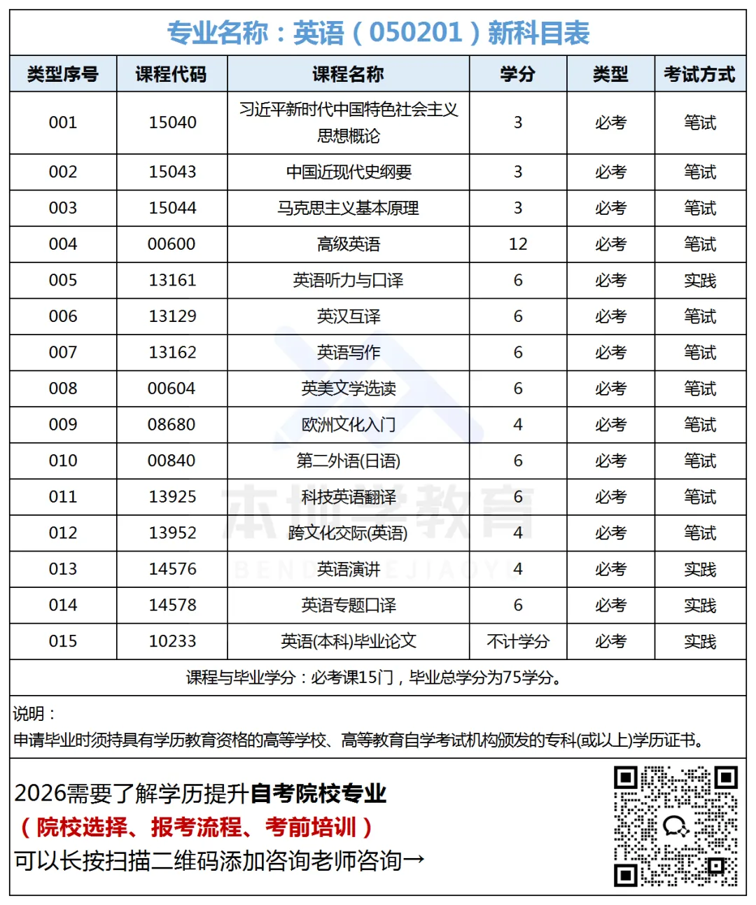 关于英语专业的考试大纲,可以在广东自学考试管理系统下载,也可以扫描下方二维码,关注【本地学学历提升】公众号,回复【考试大纲】即可下载