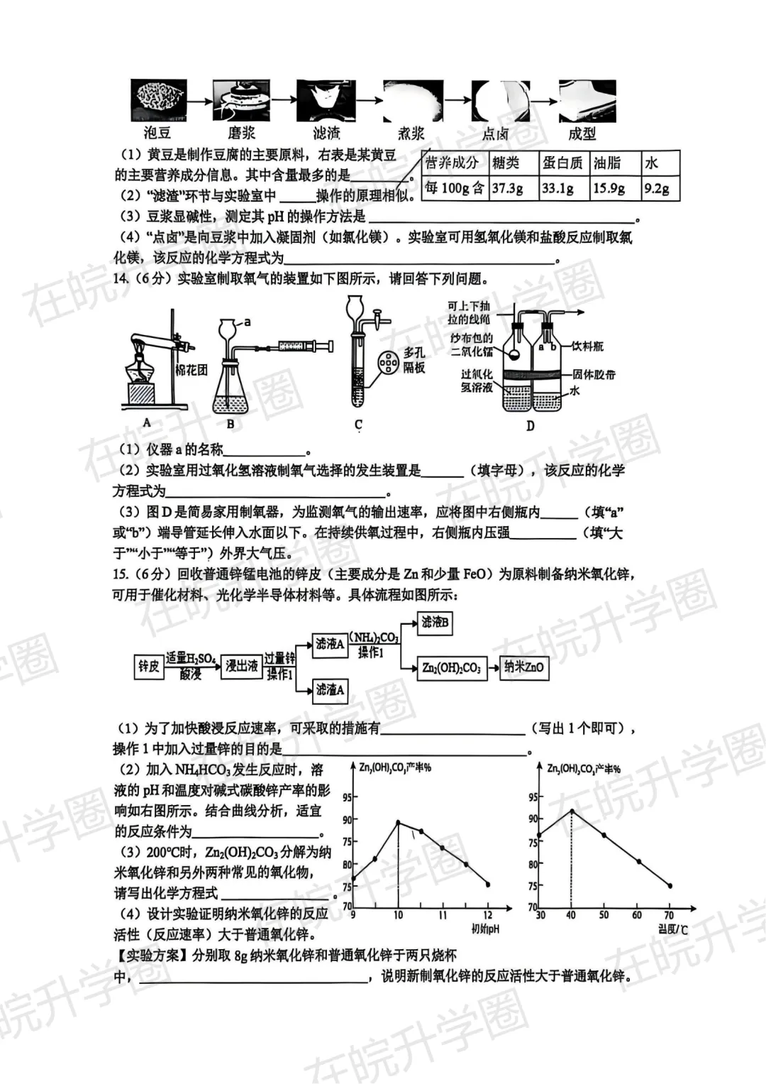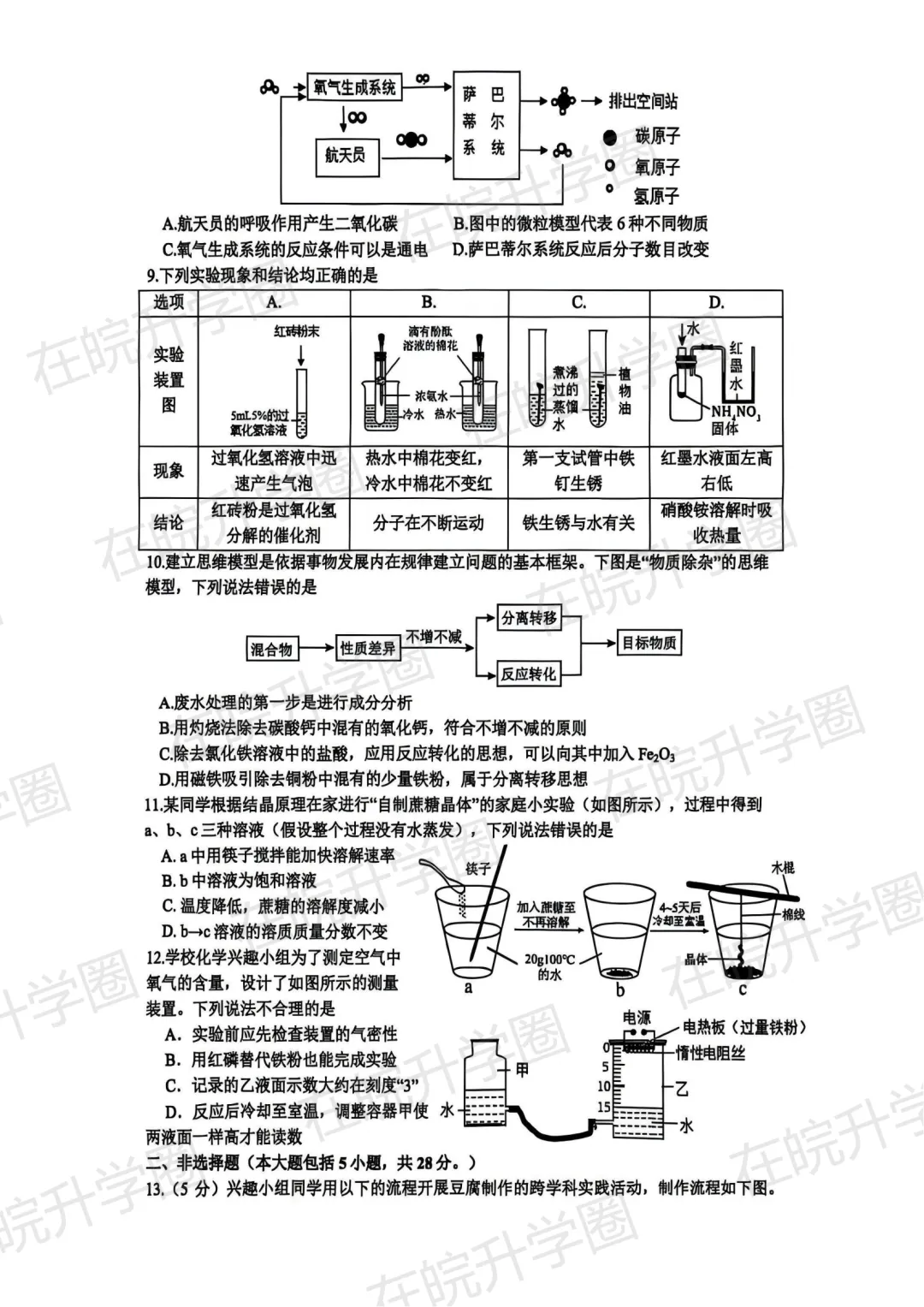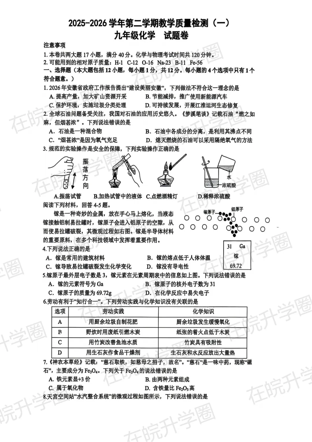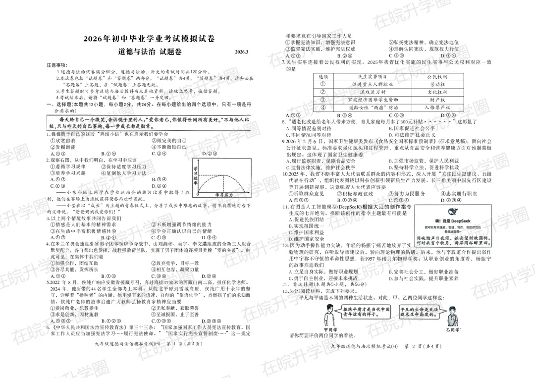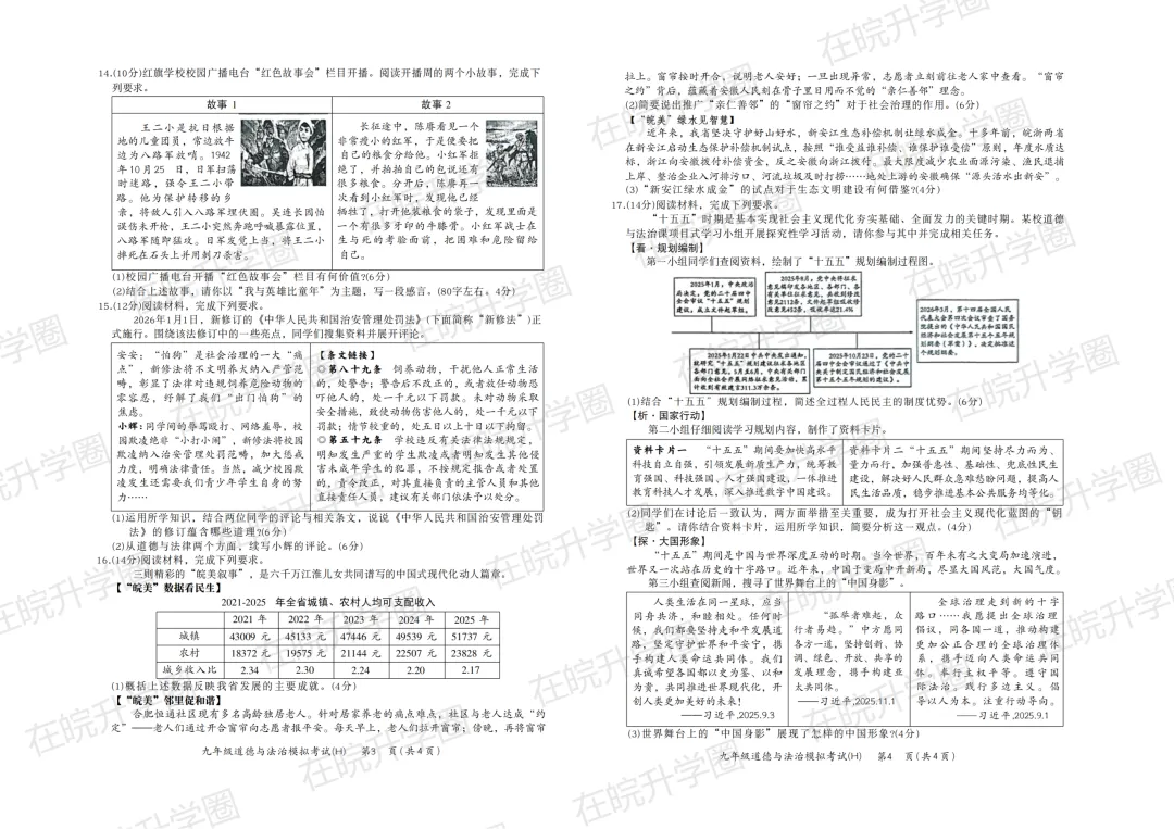 2026蜀山区中考一模部分试卷预览