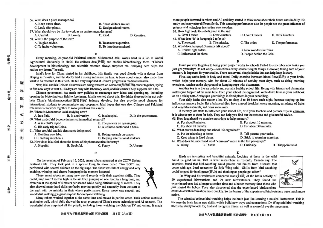 2026包河区中考一模部分试卷预览
