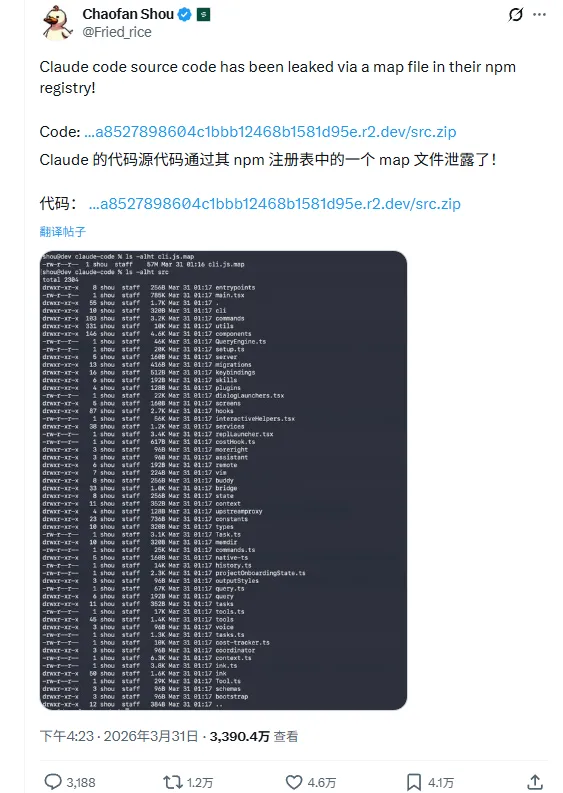 但安全研究员Chaofan Shou没睡,这位Web3安全公司Fuzzland的实习研究员,在检查Claude Code的npm包时发现了一个诡异的情况:发布包里多了个57MB的cli.js.map文件。