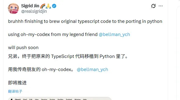 整个过程靠的是一个叫oh-my-codex的AI工作流编排工具,站在OpenAI Codex的肩膀上搞自动化,花费几个小时,Python版搞定。