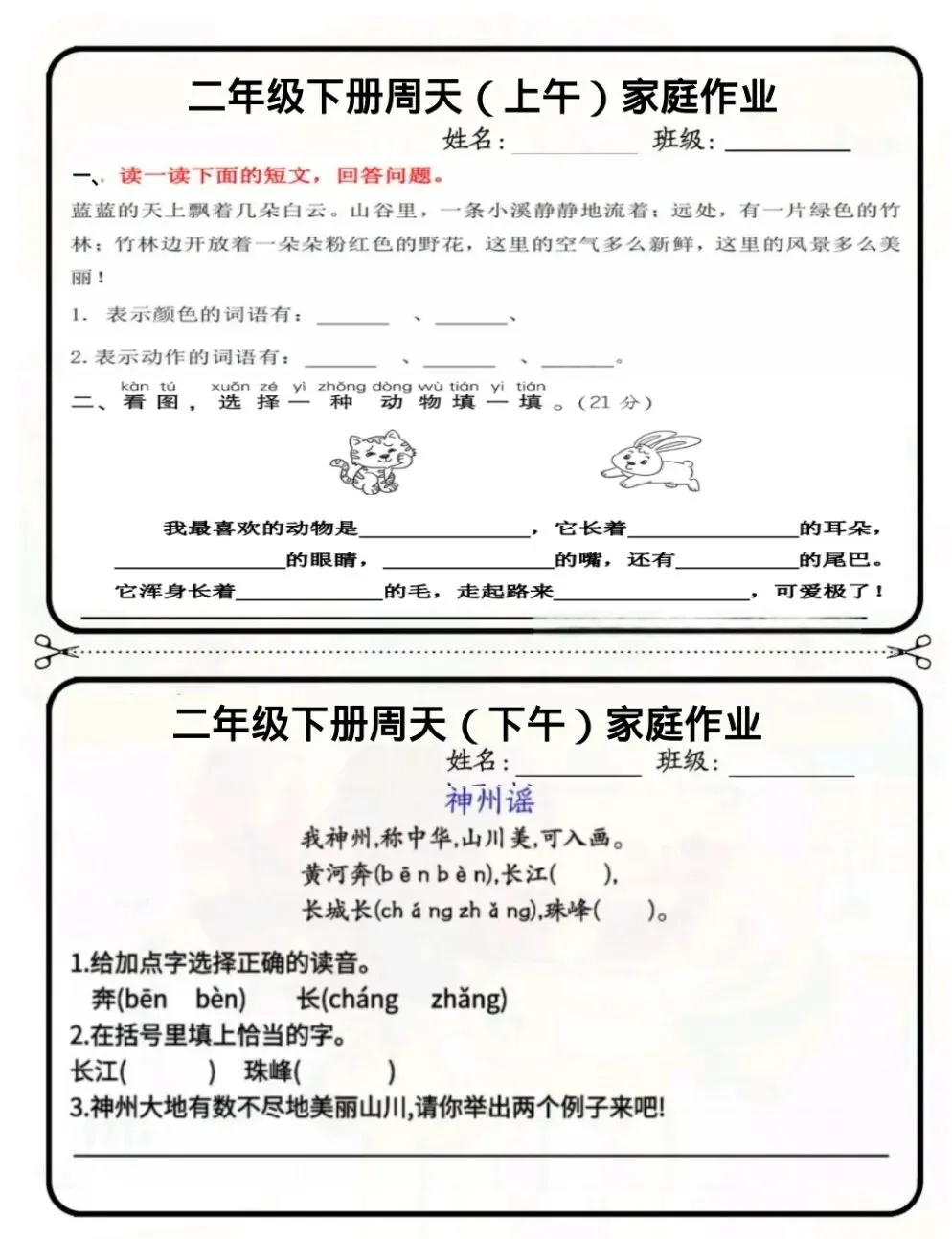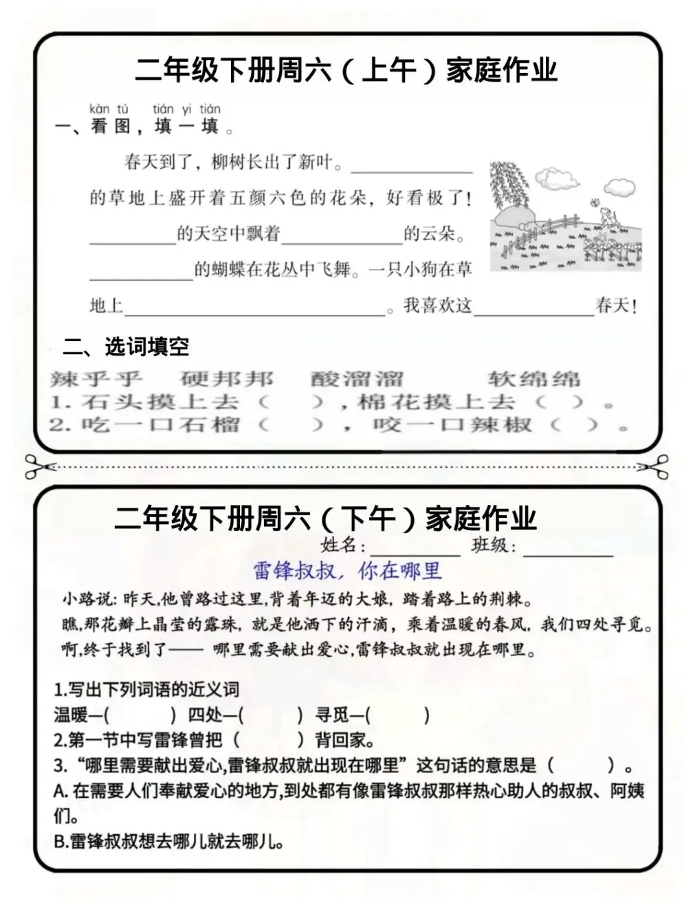 二(下)语文《 周末家庭作业》电子版可下载打印